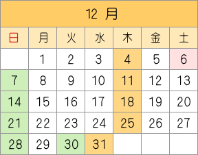 - 〇 12 / 30(火)・・・ ~ 12 : 30 受付 ~ 13 : 00 診察